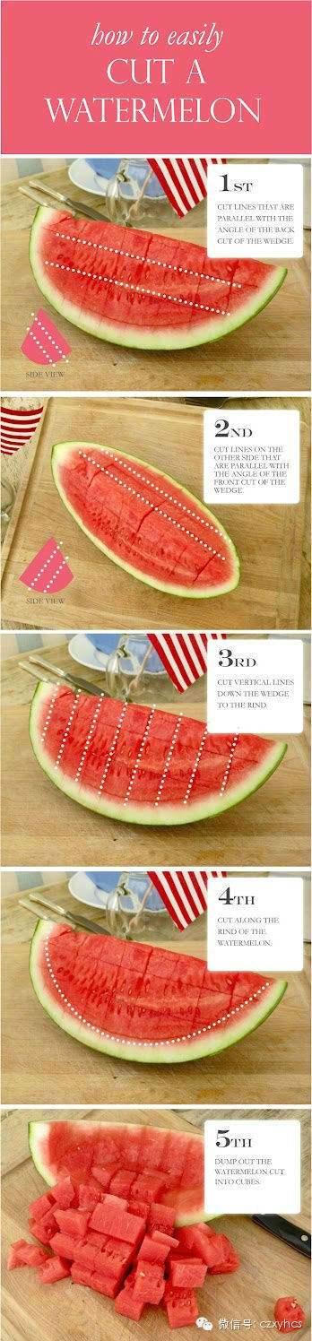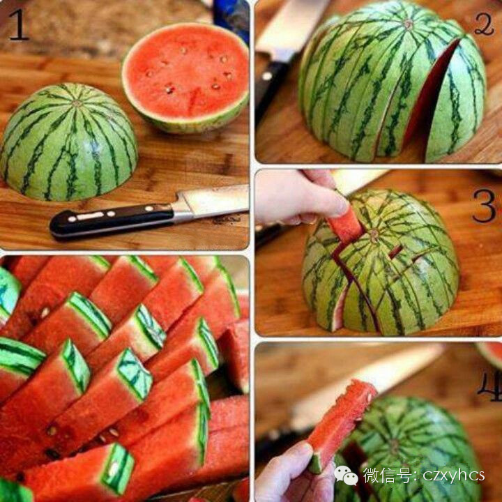 1、这样切西瓜真的是小孩子很容易吃,大人也不用怕吃到衣服上。